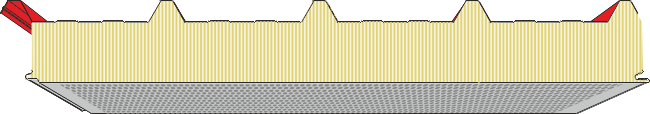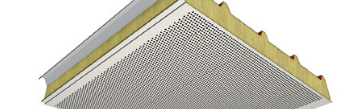 Pannelli metallici precoibentati con isolamento in fibra minerale per coperture in versione con supporto interno forato.