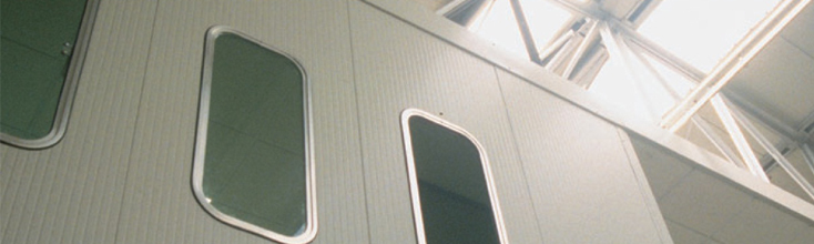 Per garantire la luce all’interno del capannone, visibilità nei vani di ispezione verso i macchinari e cabine insonorizzate, i panelli possono essere integrati con l’inserimento di oblò in metacrilato, completo di guarnizione in EPDM (standard). A richiesta può essere inserito un oblò antisfondamento.